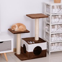 Cat Tree Scratcher Condo Play House Activity Center Post w/ Hanging Toy Brown