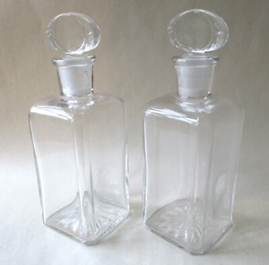 2 Antique GLASS Apothecary BOTTLES Perfume Ground Stopper Medicine Pharmacy